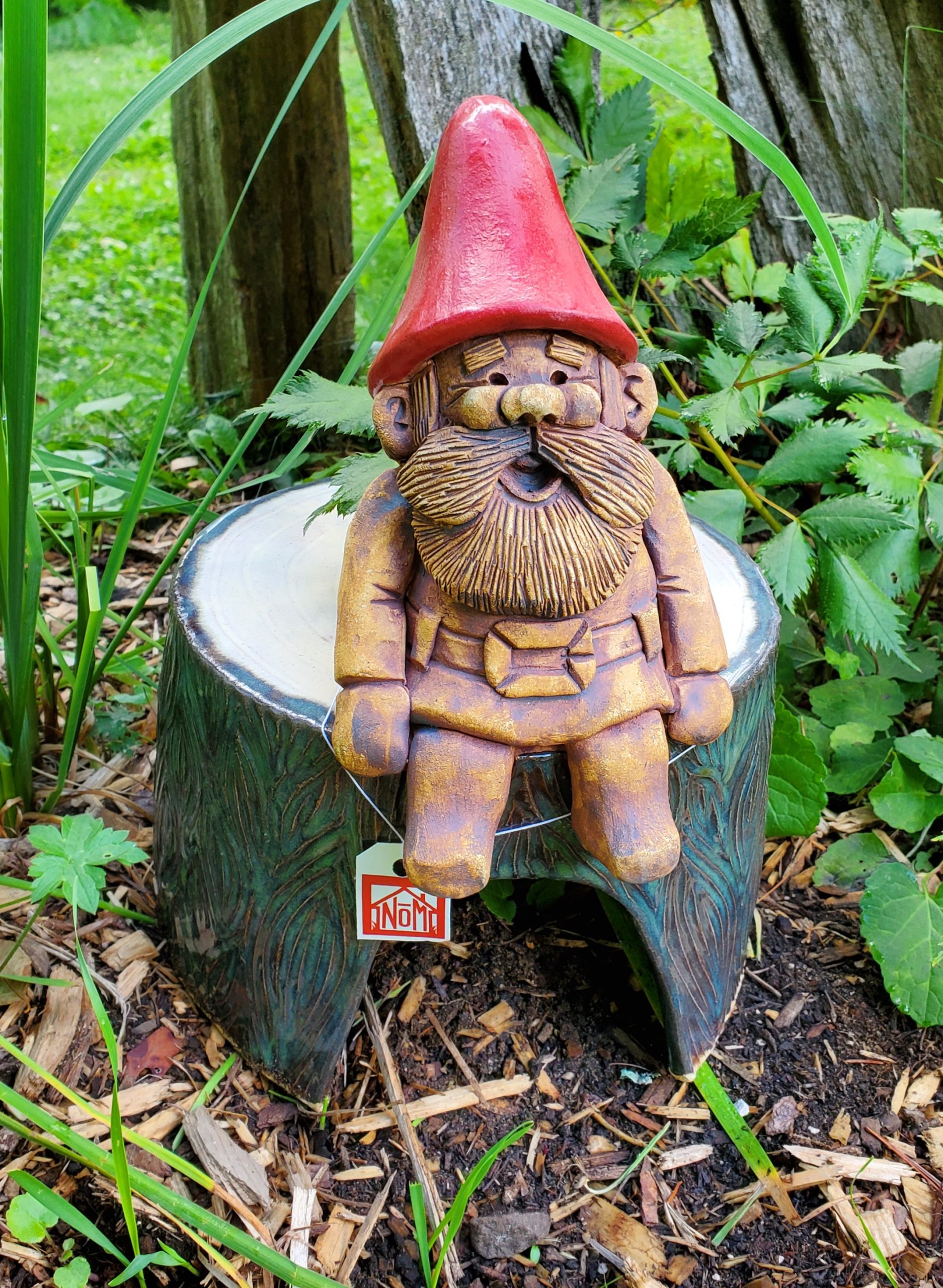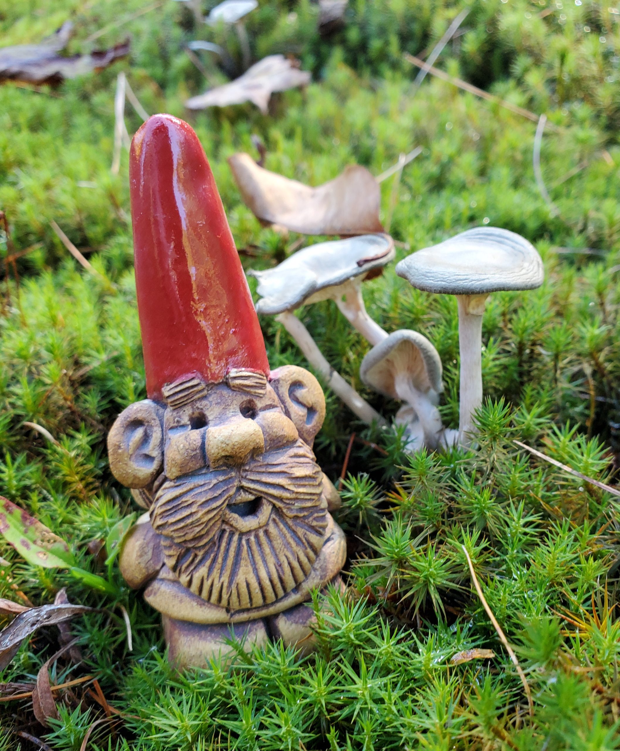 Naomi's interest in gnomes started early with a nickname of Nōm and a gnome home dollhouse her father made for her when she was a child. Her handmade high-fired gnomes and slab built woodland inspired pottery take 4-6 weeks from start to finish with each piece being truly one-of-a-kind. Naomi and her wares, have been bringing humour and whimsy to patrons, collectors and garden lovers for over 20 years from her cute little Utterson home studio.
